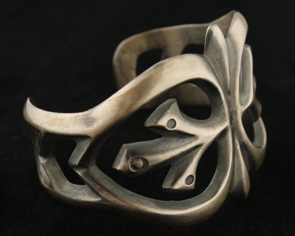 Lot 579 Unique Sandcast Sterling Cuff Bracelet