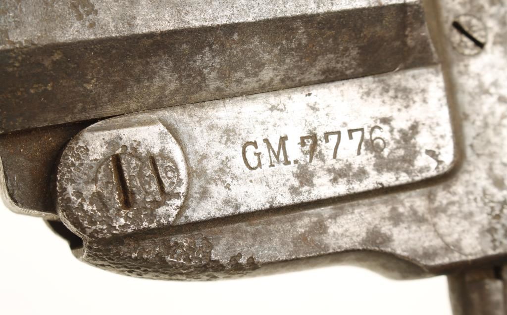 Marked 'GM7776'. Heavily pitted metal with wood handle.