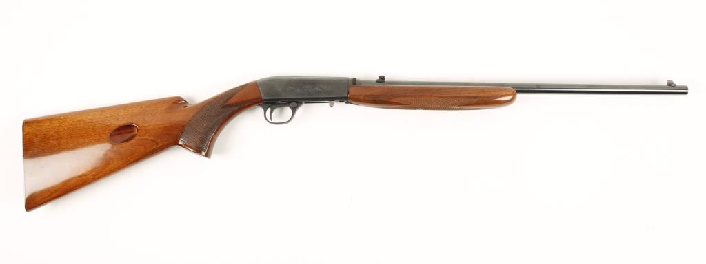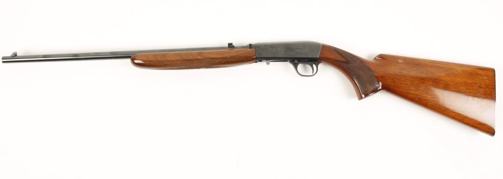 Semi-auto Belgium made Grade-II rimfire rifle. 19" blued barrel in excellent condition with a shiny bore and good rifling. Walnut stock is in very good condition with only minor scratches. Receiver and action appear to be in excellent shape Condition is Very Good. Modern FIrearm