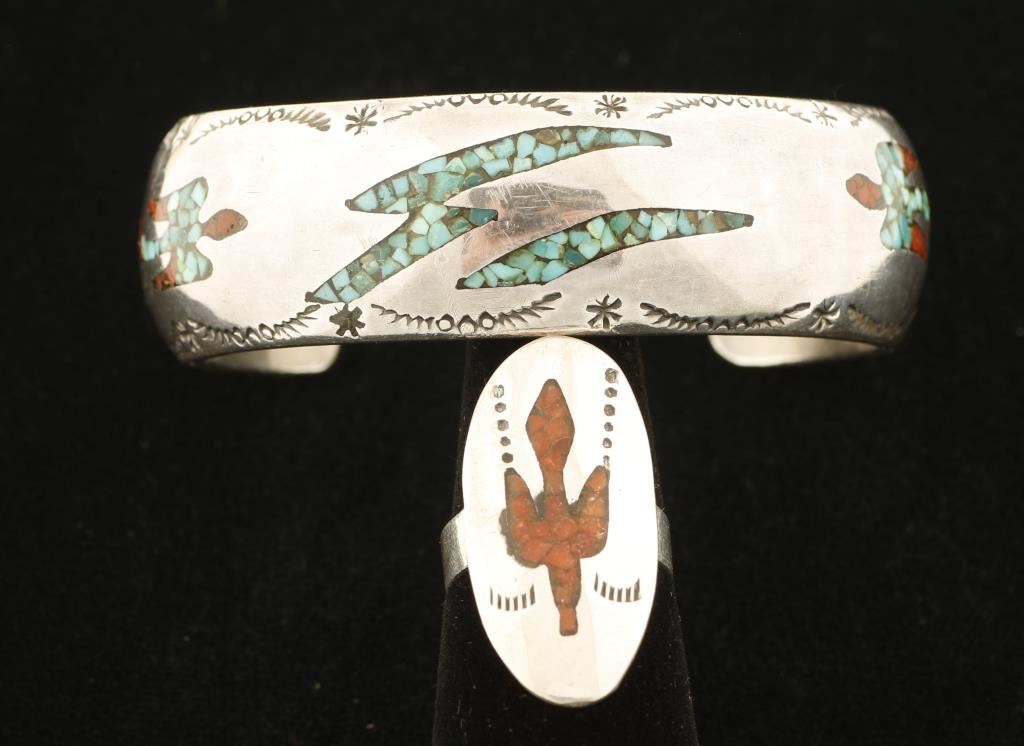 Lot 690 Chip Inlay cuff & Ring by Corbet Joe.
