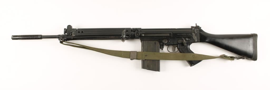 Semi auto version of the FN FAL assault rifle with a 20" barrel. Stamped "Type 03 Metric". Polymer buttstock with rubber recoil pad. Aluminum fore end with integral bipod. Adjustable front and rear sights. Adjustable gas check. Bore is immaculate. Flash hider. Includes tools, sling and 1 mag. Rifle short cycles and may need to be taken to a gunsmith. Condition is good. *Modern Firearm*