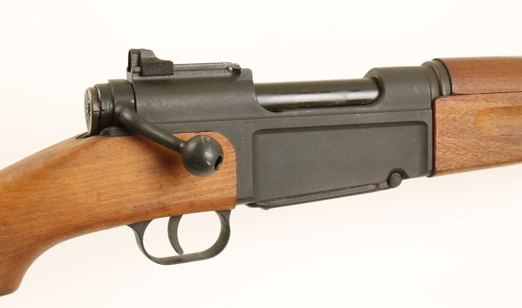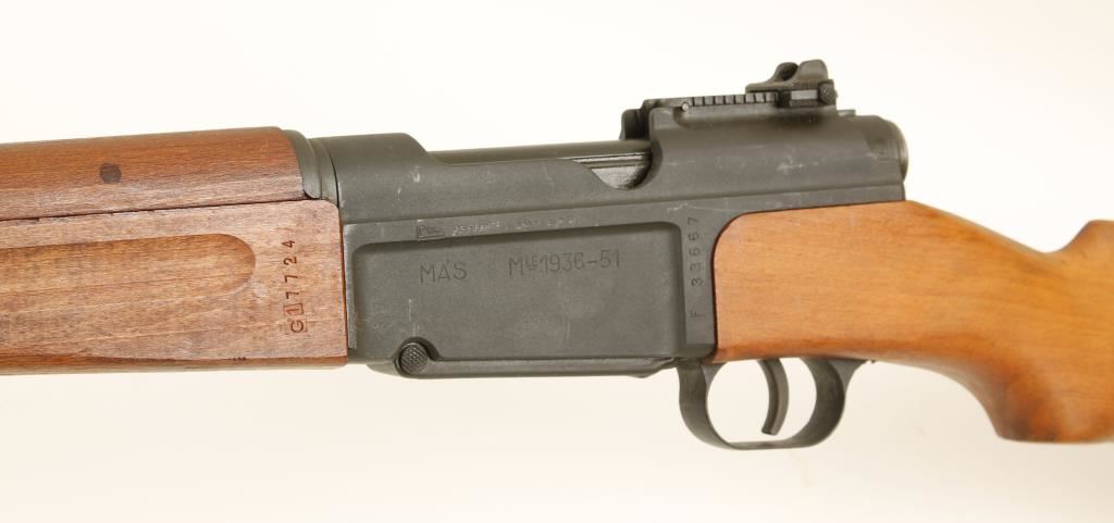 French military bolt-action rifle with a 24-3/4" barrel (including grenade launcher). Assembled from parts, the serial number matches the receiver and the bolt handle only. Butt stock is stamped "G36213" and the forend is stamped "G17724". Refinished and in very good cosmetic condition. Bore is bright and shiny with strong rifling. Action works well. Includes a slip-on recoil pad and the bayonet stored in the fore stock. Condition is very good.