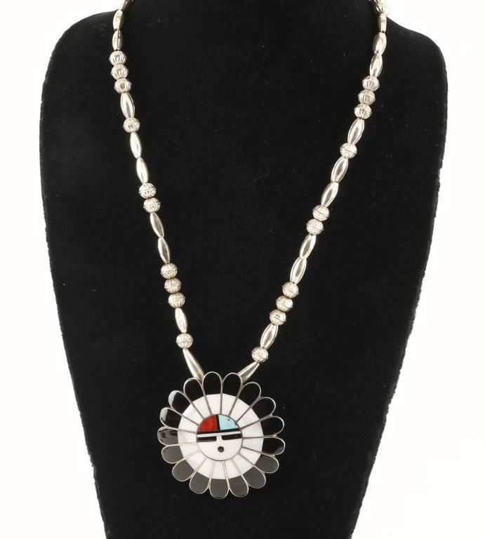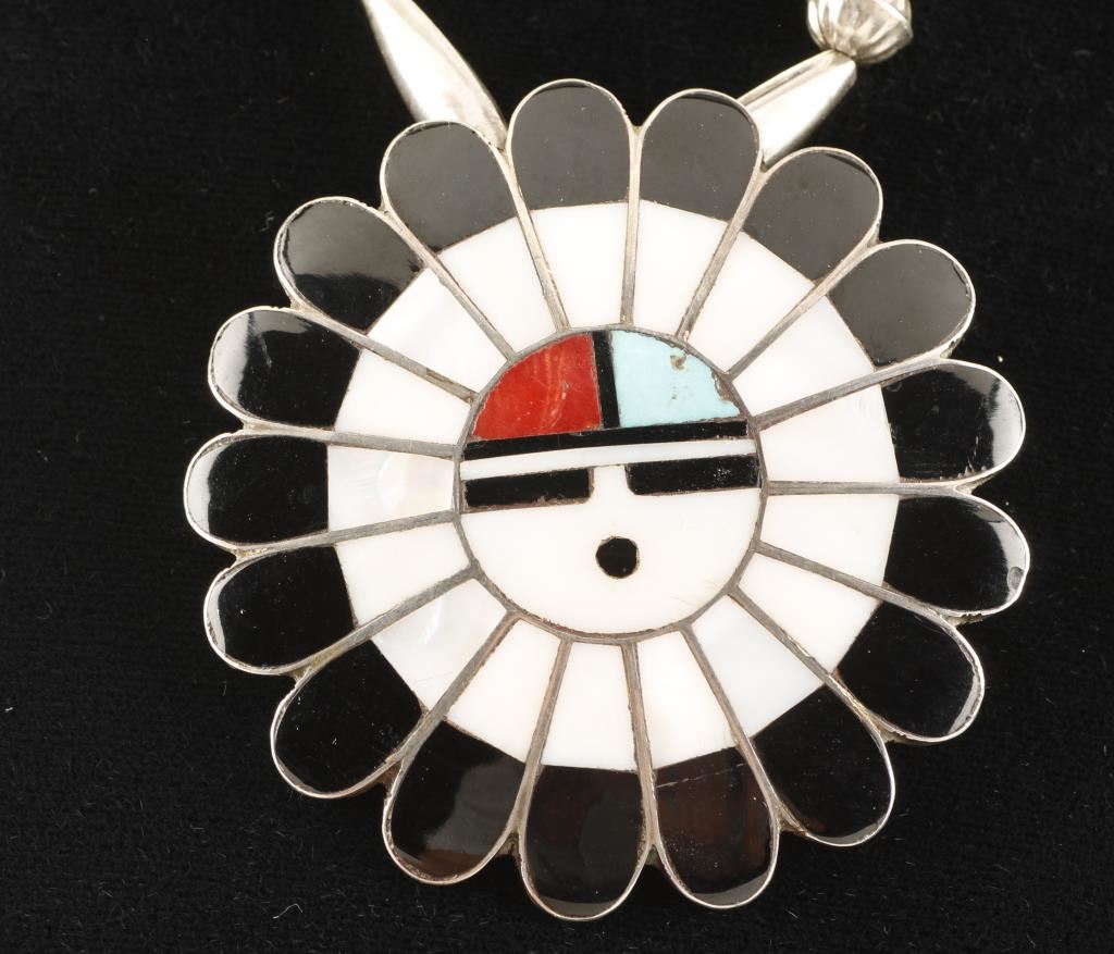 Lot 866 Large Zuni Sunface Pin/Pendant on Beaded Necklace