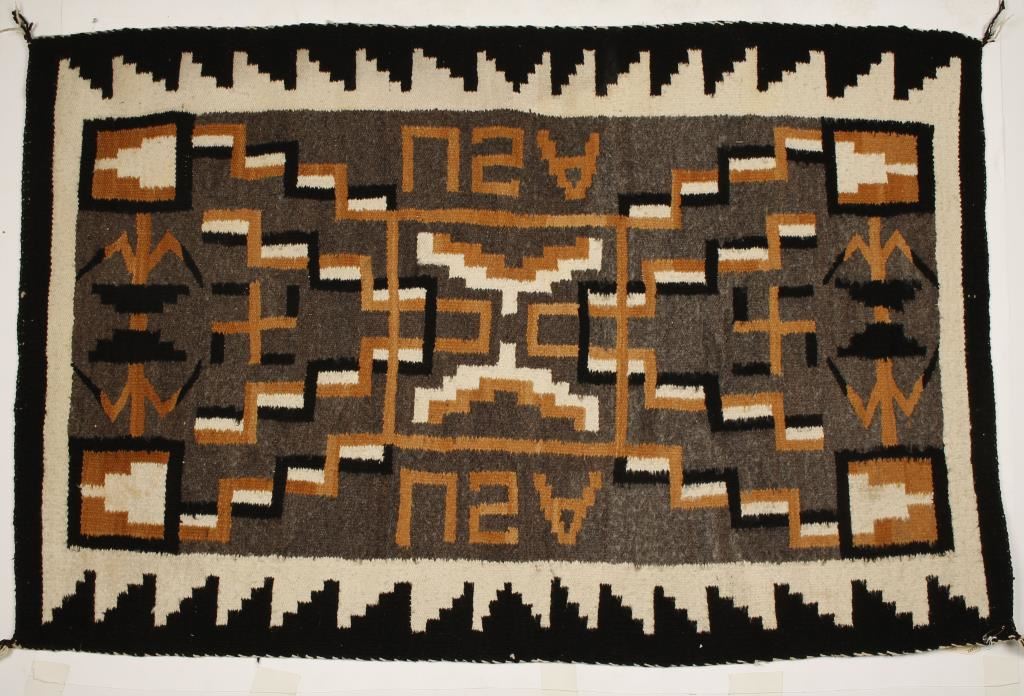 Measures 35"x54" in tan, gray, black and white. In overall excellent condition .