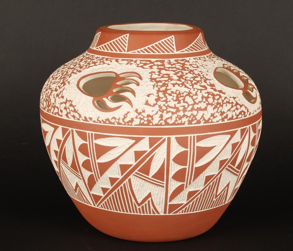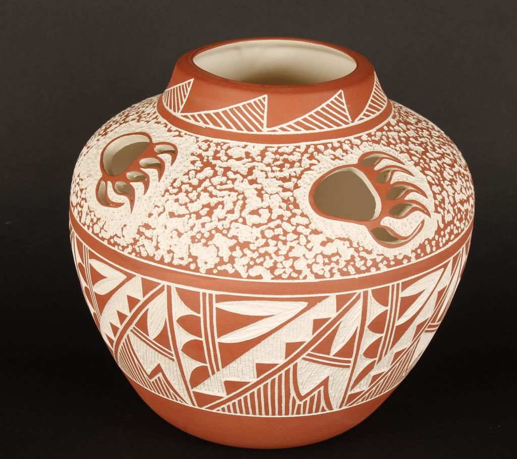 Lot 880 Acoma Incised Carved Pot LC/CC with Bear Claw