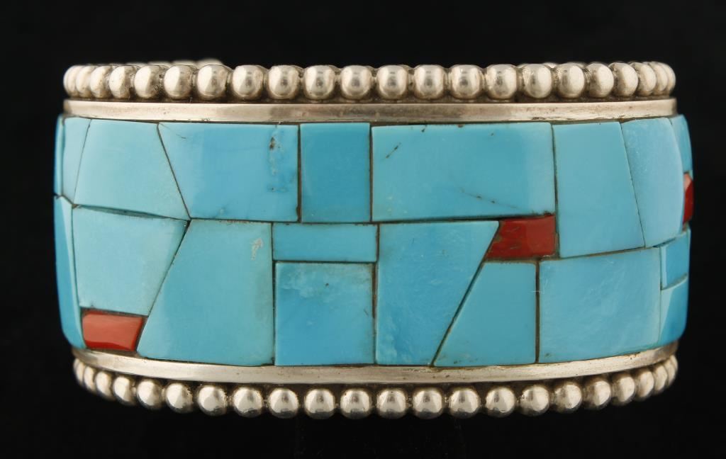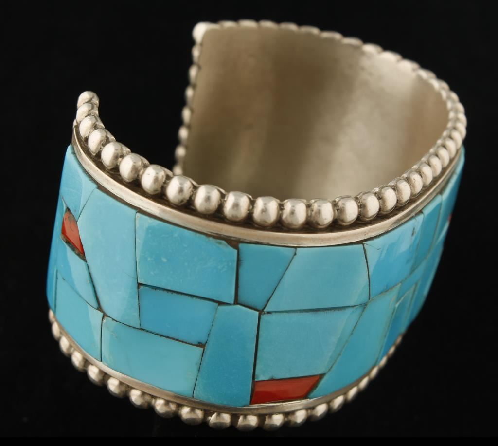 Lot 891 Beautiful Kingman Turquoise and Coral Cuff