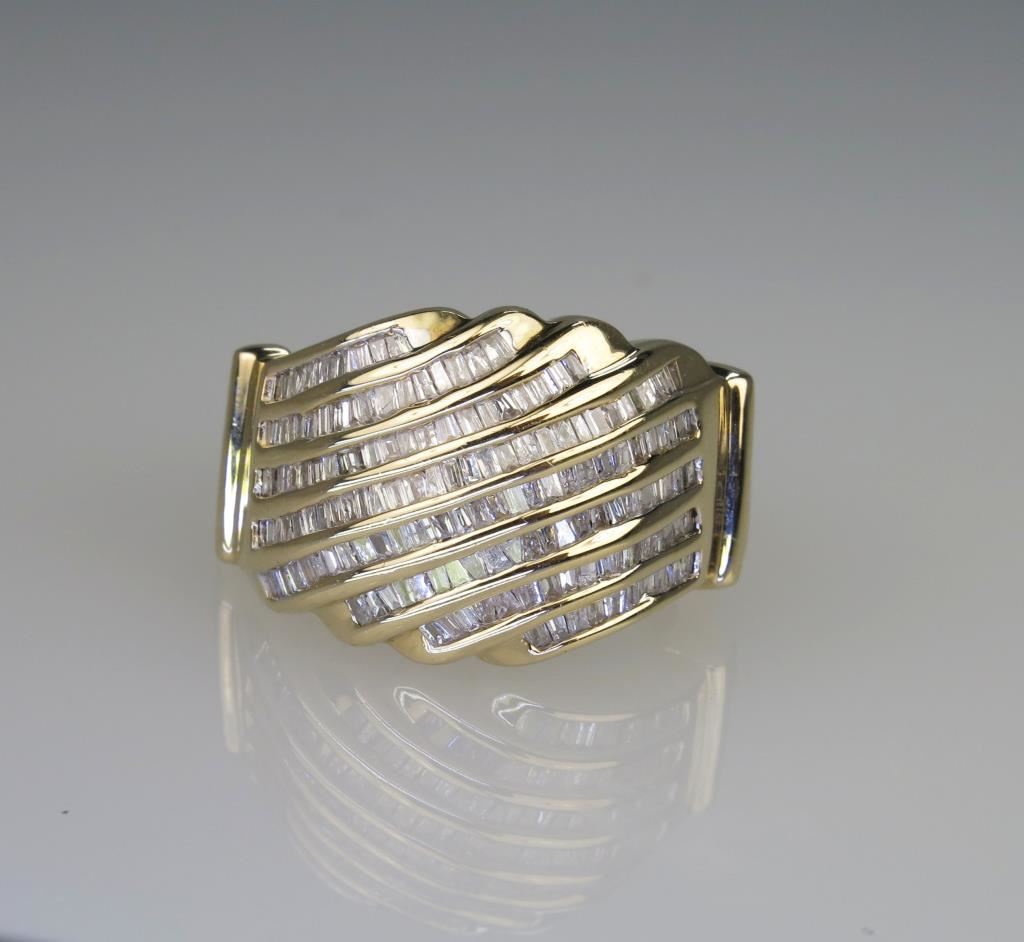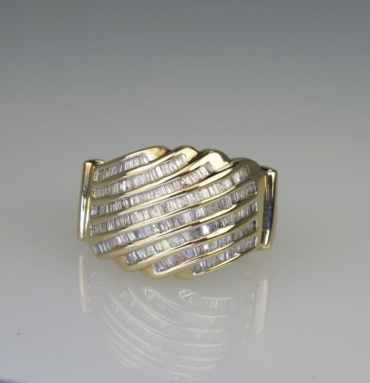 164 Baguette cut channel set Diamonds weighing approx. 2.00-2.50 carats total with H-I colors set in 10 karat yellow gold.