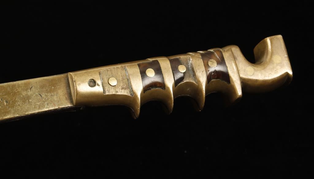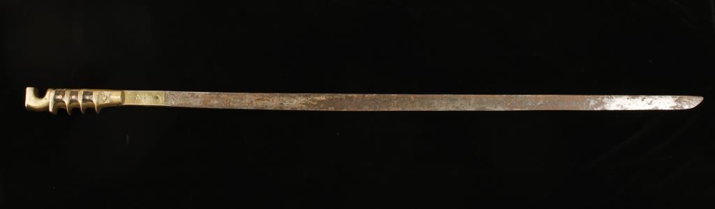With Brass Handle Which Has Grooved Hand Holds, Engraved Blade With Lines And Dashes, Shows Age, Measures 38 1/2" Overall With A 33" B Alde.