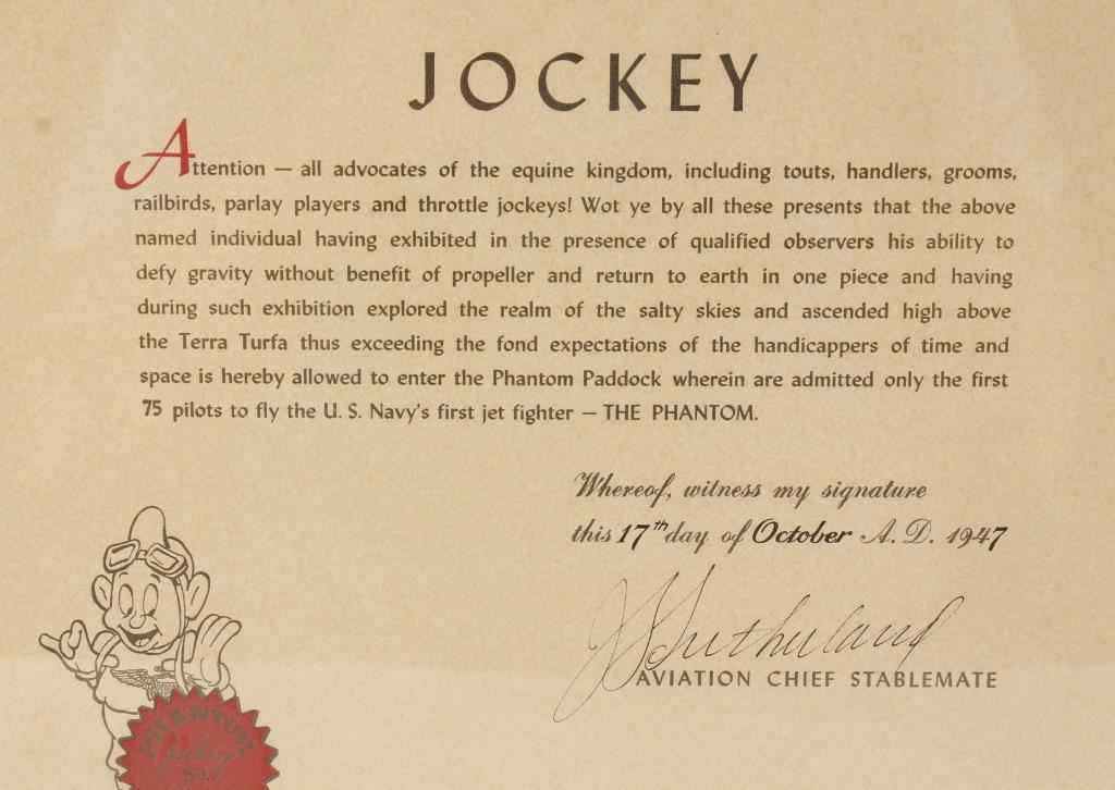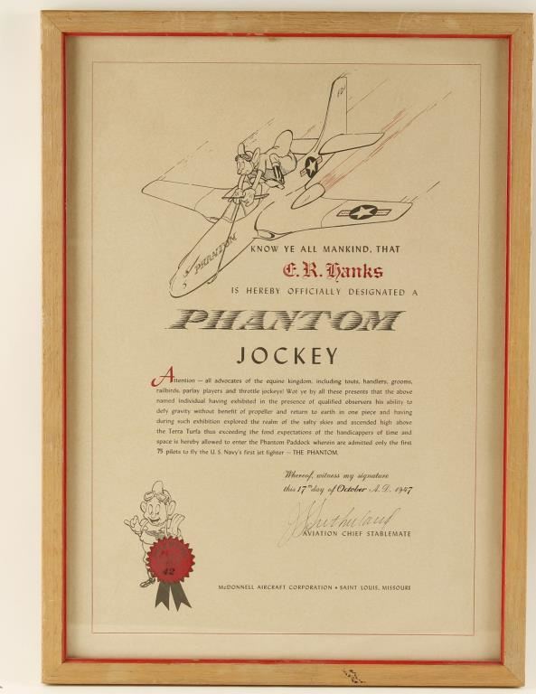 Lot 1018 Framed Certificate of E.R. Hanks Phantom Jockey