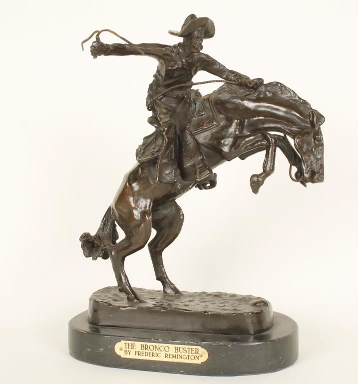 entitled Bronco Buster on marble base, measures 12X12, quality restrike.