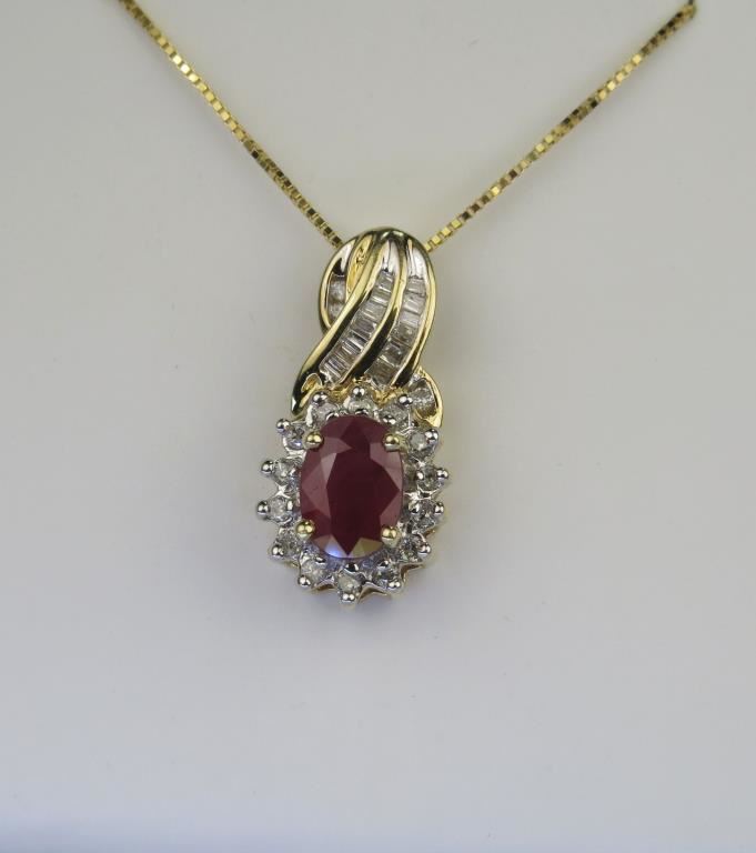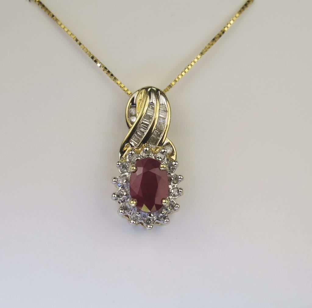 Lot 1106 Radiant Ruby & Diamond Pendant.