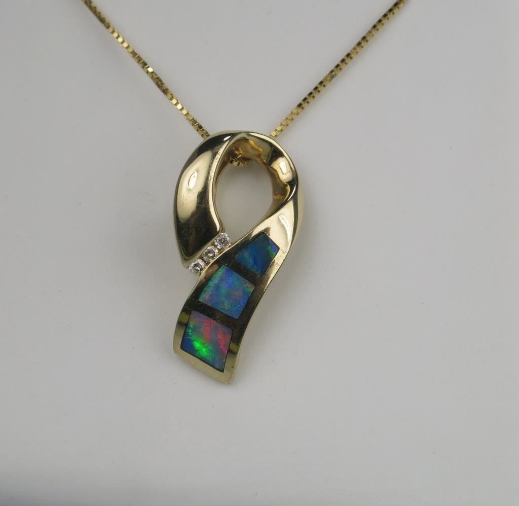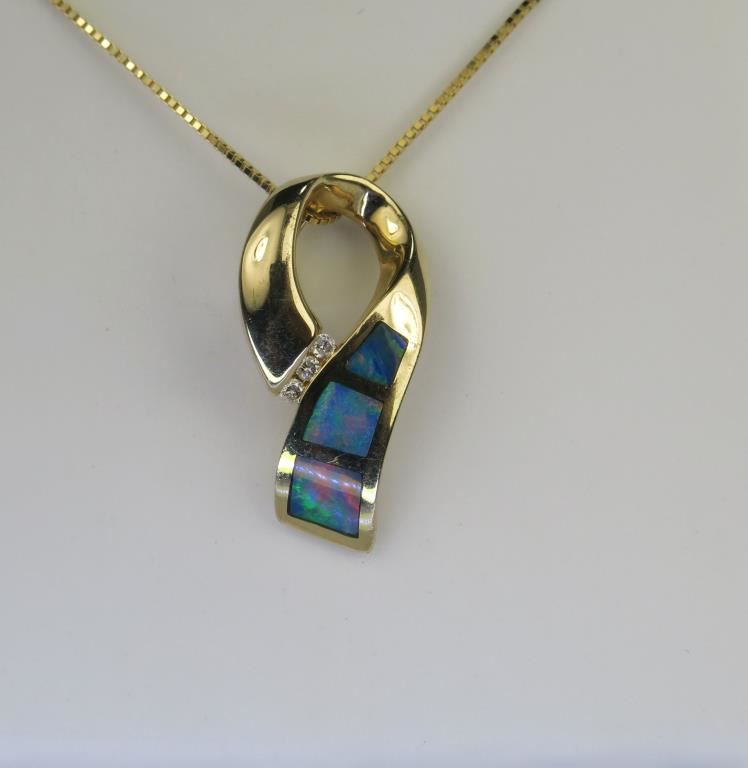 Lot 1112 Ribbon Motif Inlayed Opal & Diamond Pendant