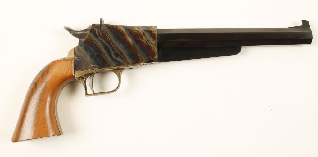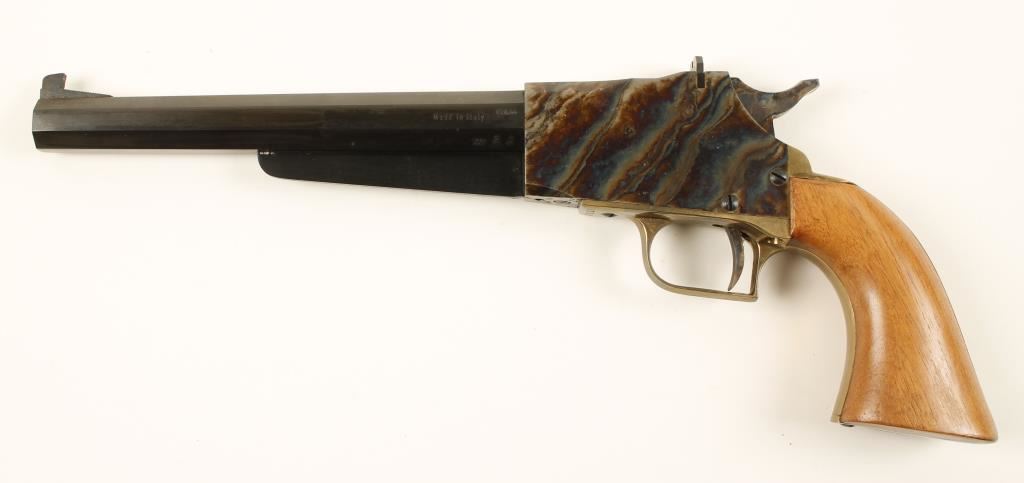 Italian Single Shot, Case colored , wood grips,.Made in Italy Condition is Very Good *Antique Firearm*