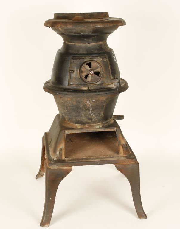 Scaled down air-tight pot-bellied stove for the railroad cabooses. Marked "1889 Convstoga", measures 26" x 15". Very heavy will not ship.