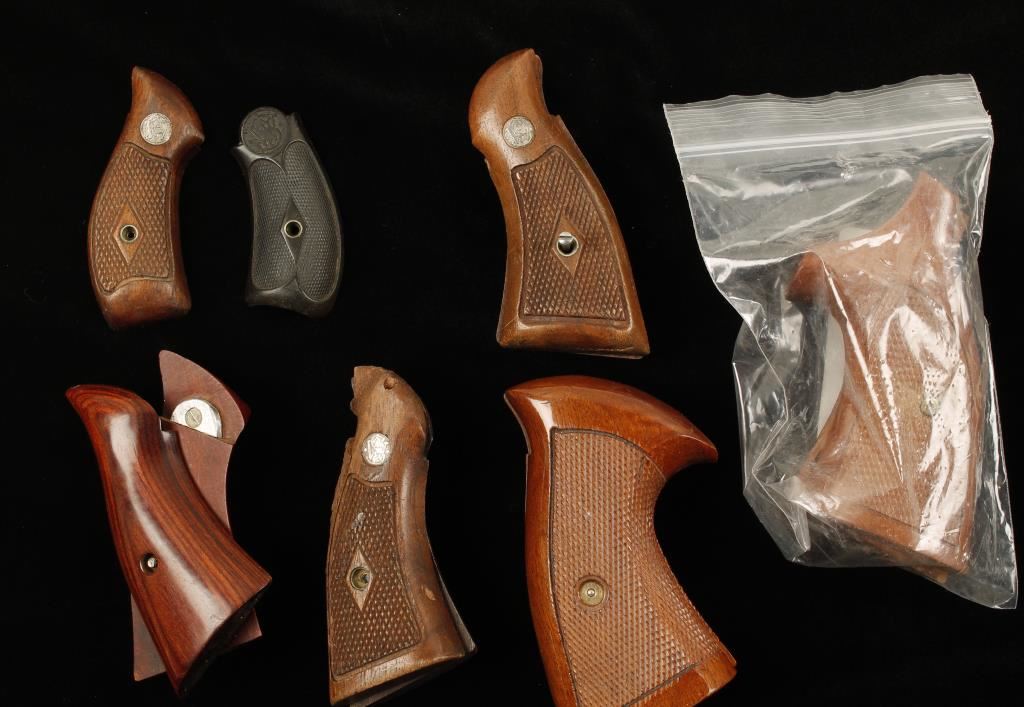 2 S&W Walnut Medallion Grips, 2 S&W Walnut Grips and others.