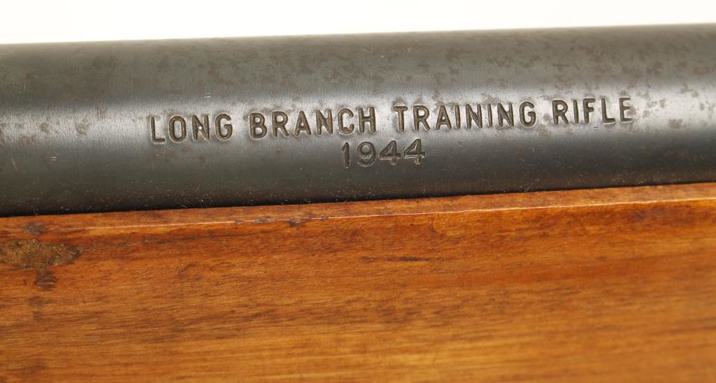 Canadian made training rifle stamped "1944". Bluing has some edge wear and some freckling of rust. Wood has some scratches scrapes and dings. Actino works well. Condition is good to very good.