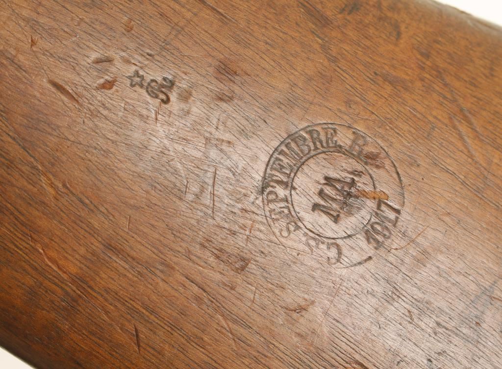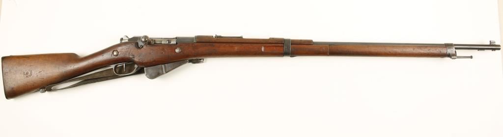 French military blued bolt-action rifle with a 31.5" barrel and a leather sling. Bluing is good with some edge wear, pitting and a little staining. All serial numbers match. Wood has factory cartouche with the date of September, 1917. There are also many dings and scratches. Bore is a little frosty with strong rifling. Action is good. Condition is good. *Modern Firearm*