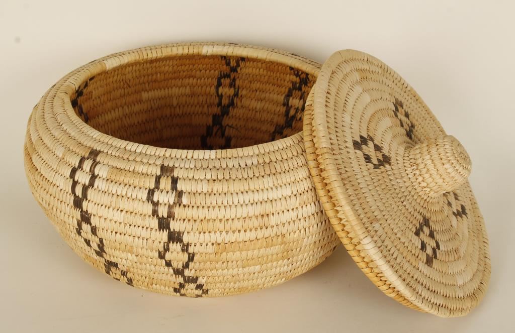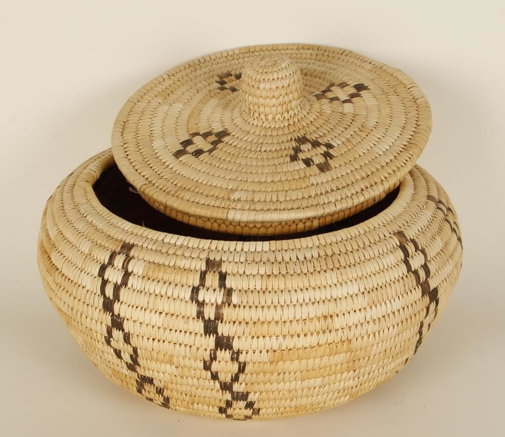 Lot 1417 Ooham Lidded Basket with Geometric Design