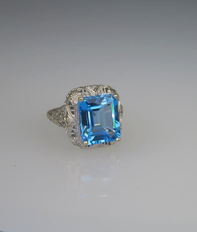 Lot 1426 Alluring Victorian Style Swiss Blue Topaz Ring.
