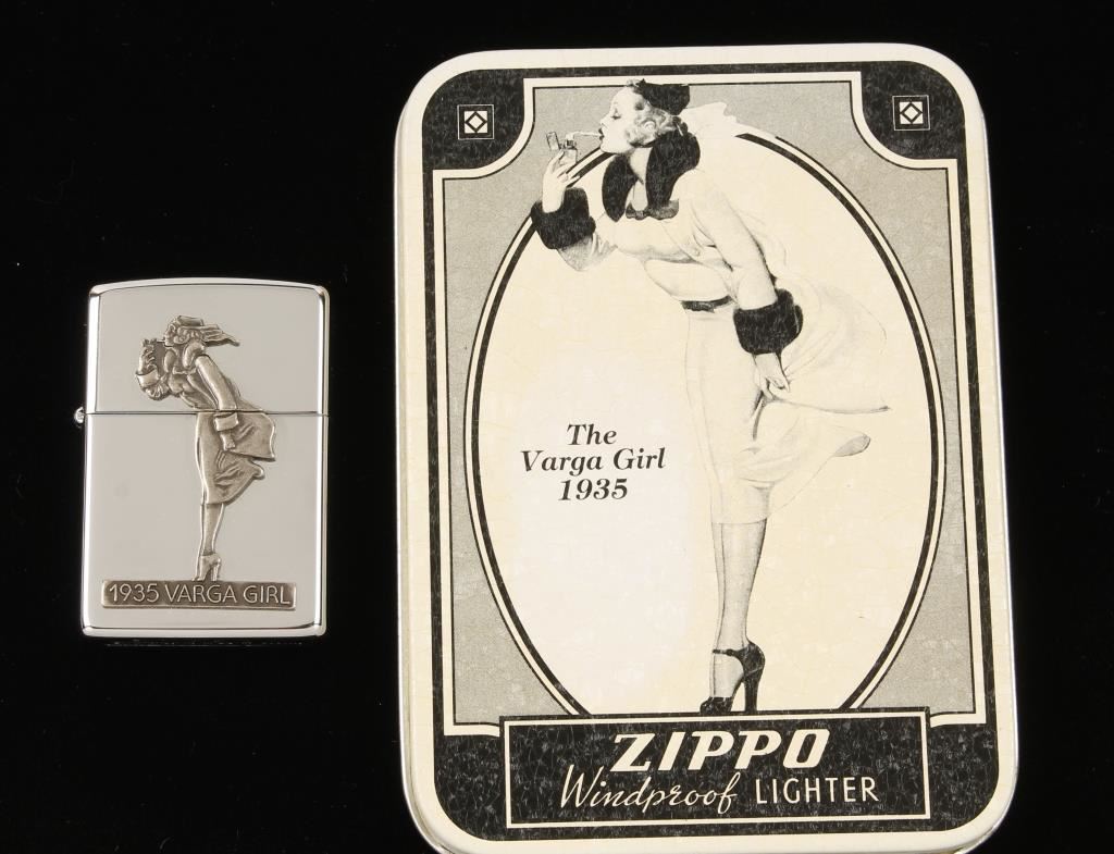 Including 'The Varga Girl 1935' in collector tin & a 'Winston' lighter in original box.