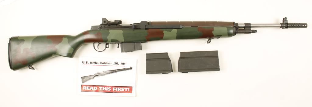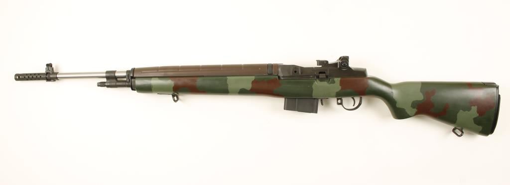 US M1A Springfield Armory rifle with camouflage McMillan glass bed stock. Stainless match barrel, 3 mags and 2 sling swivels. Condition is overall Good. *Modern Firearm*