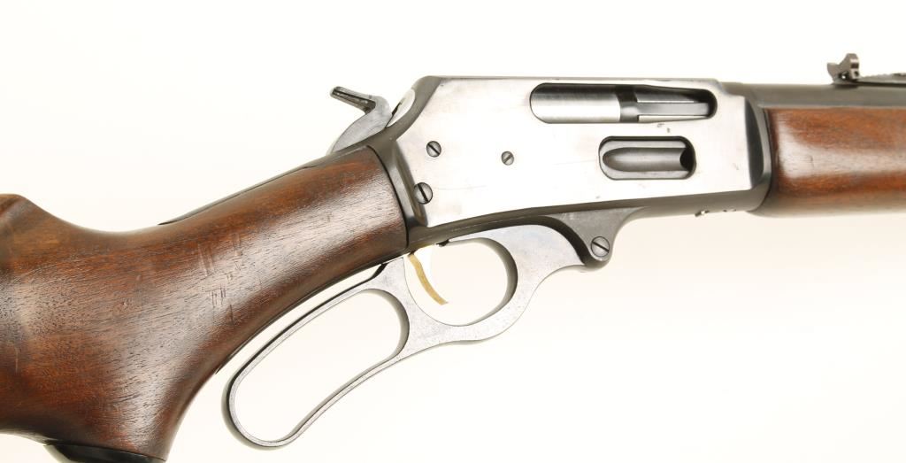 Blued finish with a brass trigger, wood stock. Lever action. Condition is overall Very Good. *Modern Firearm*