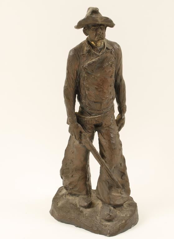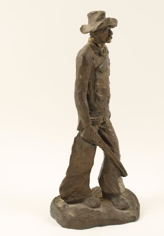 Signed but illegible. Measures 11"x5". Appears to be repaired at neck and on hat.