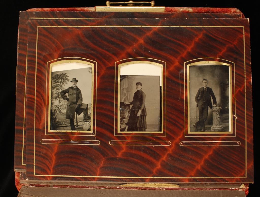 Lot 1614 Antique Red Velvet and Brass Photo Album