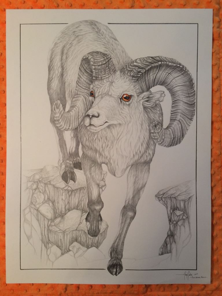 Portrait of a mature BC Stone Ram in graphite penil