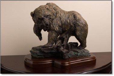 Description: Lorenzo Ghiglieri has mastered the art of detail in all his magnificent sculptures. “Cantankerous” features a rare bit of whimsy. Ghiglieri, who is an adventurer in addition to an artist, actually has had several personal encounters with grizzly bears on his many trips to Alaska. In addition to the powerful features of the great grizzly, look closely and you’ll see a tiny field mouse that seems to be inciting the bear’s ire.