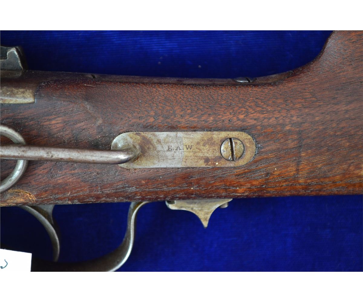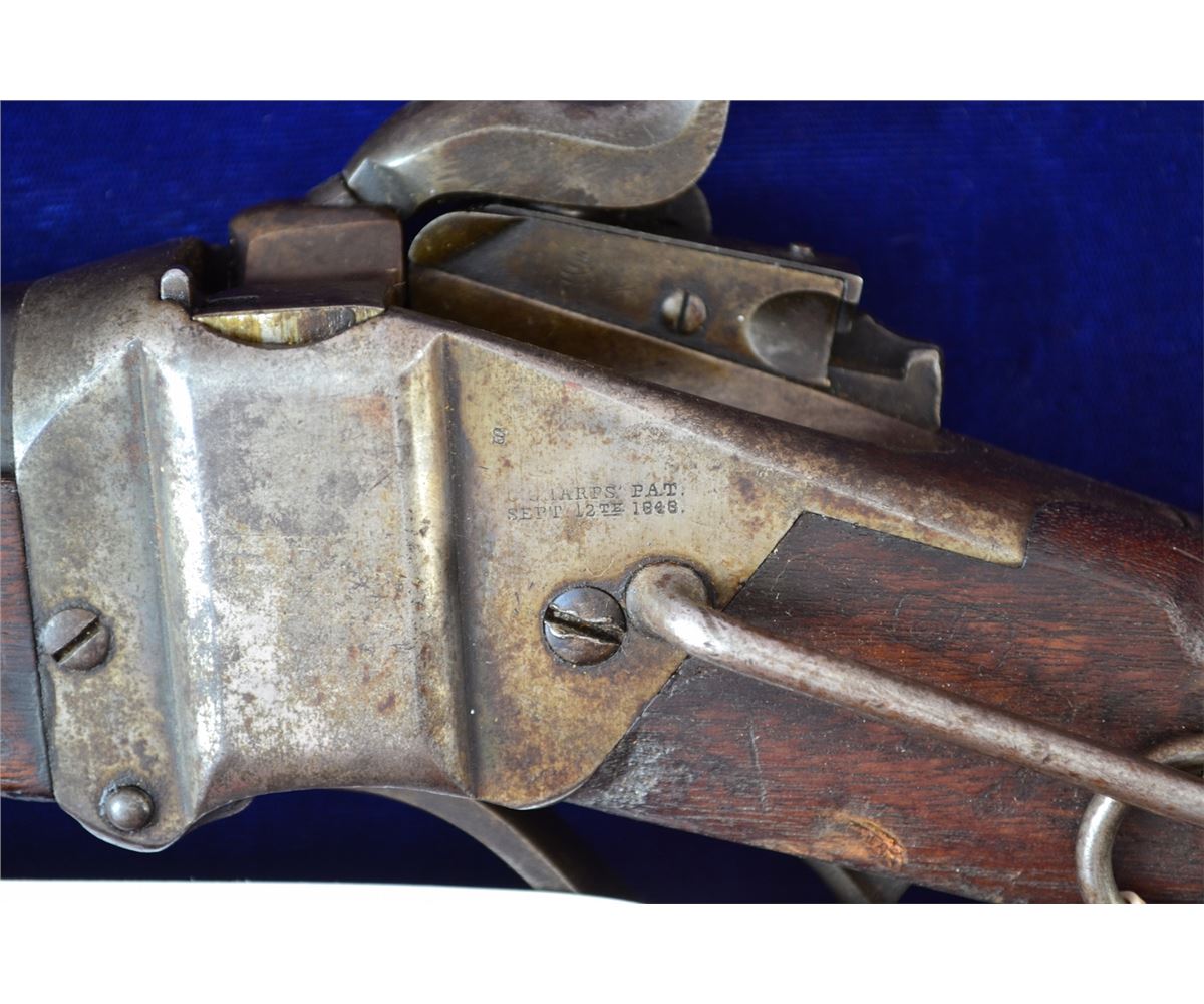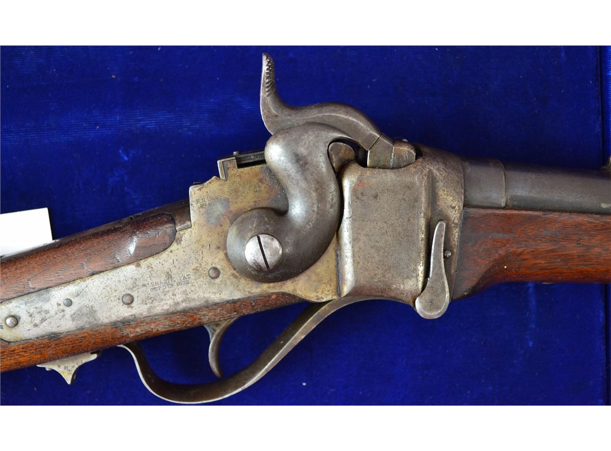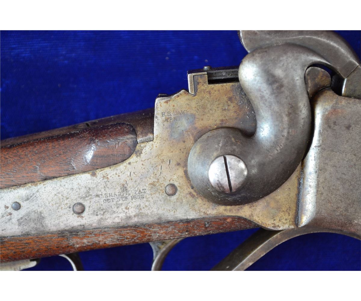 SHARPS SRC LOOKS TO BE 50CAL LIGHT CARTOUCHE IN WOOD BORE IN EXCELLENT CONDITION SHOWING NO SIGNS OF PITTING TRACES OF CASE COLORING ON RECEIVER 60% BLUEING ON BARREL BUTTSTOCK AND FORE GRIP SHOW NO CRACKS FRONT SIGHT HAS BEEN CHANGED FRONT TIER STYLE A FINE EXAMPLE OF AN EARLY SHARPS PRE 98