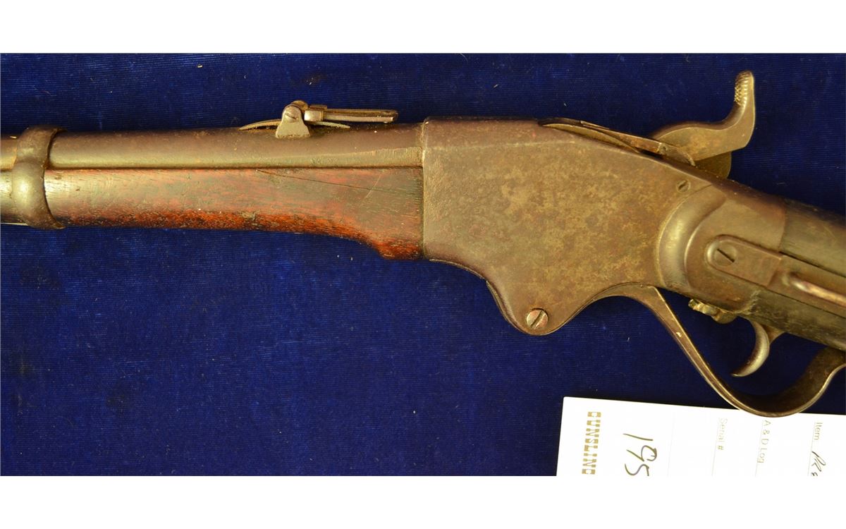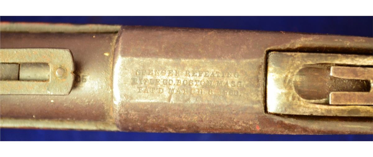 SPENCER CARBINE MODEL 1865 BORE VG, LIGHT PITTING ONLY, NO VISIBLE CRACKS IN WOOD MECHANICALLY SOUND BUT HAVING TROUBLE GETTING MAG TUBE OUT PRE 98