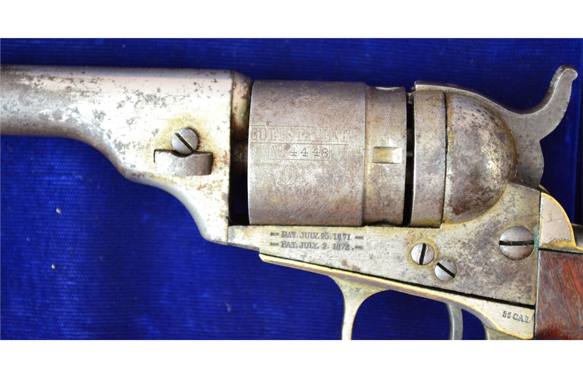 COLT 1862 POLICE CONVERSION MECHANICALLY SOUND ALL FOUR SERIAL NUMBERS MATCH NUMBER ON CYLINDER MATCHES TRACES OF ORIGINAL NICKELING PRE 98