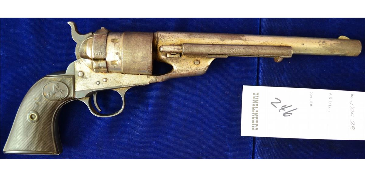 COLT RICHARDS CONVERSION GOOD WORKING ORDER SERIAL NUMBERS ON BARREL AND FRAME ARE 2389 AND ON BACK STRAP AND BUTT ARE 201538 HAS 1873 STYLE HARD RUBBER GRIPS VERY WELL FITTED 44COLT CAL SERIAL NUMBER ON BREECHPLATE IS 1171 PRE 98