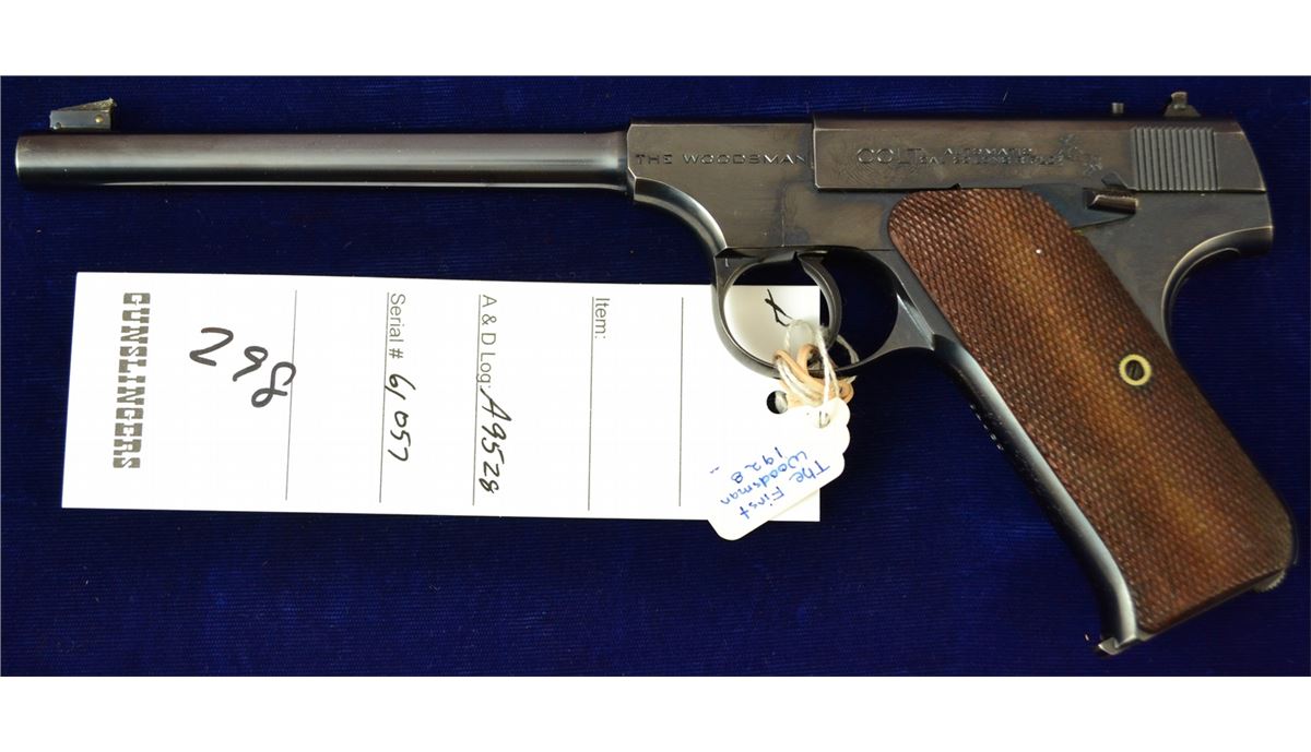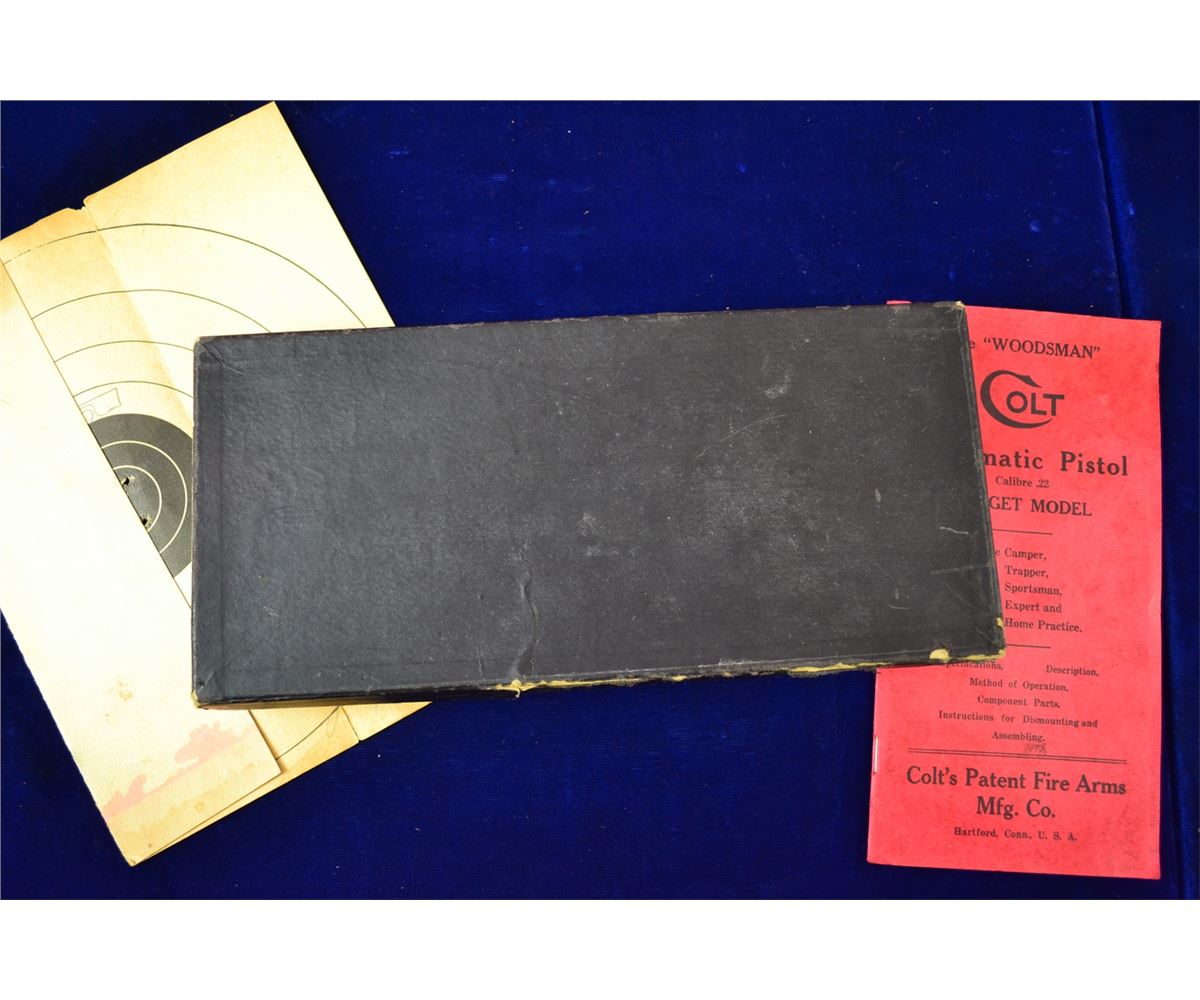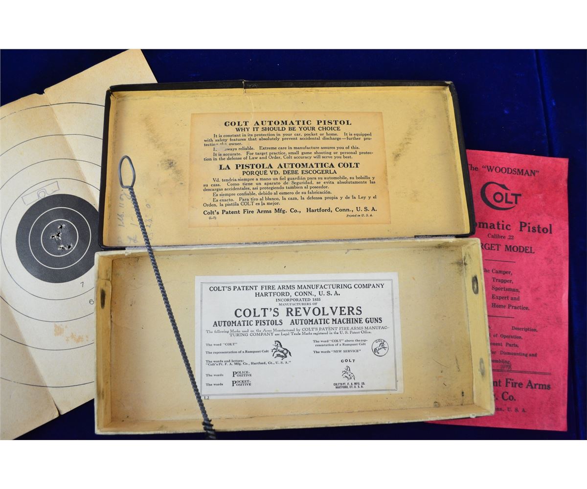 COLT WOODSMAN IN ORIGINAL BLACK BOX WITH ORIGINAL PAPERWORK AND TARGET GUN LOOKS TO BE 98% AS NEW A9528 SERIAL 61057