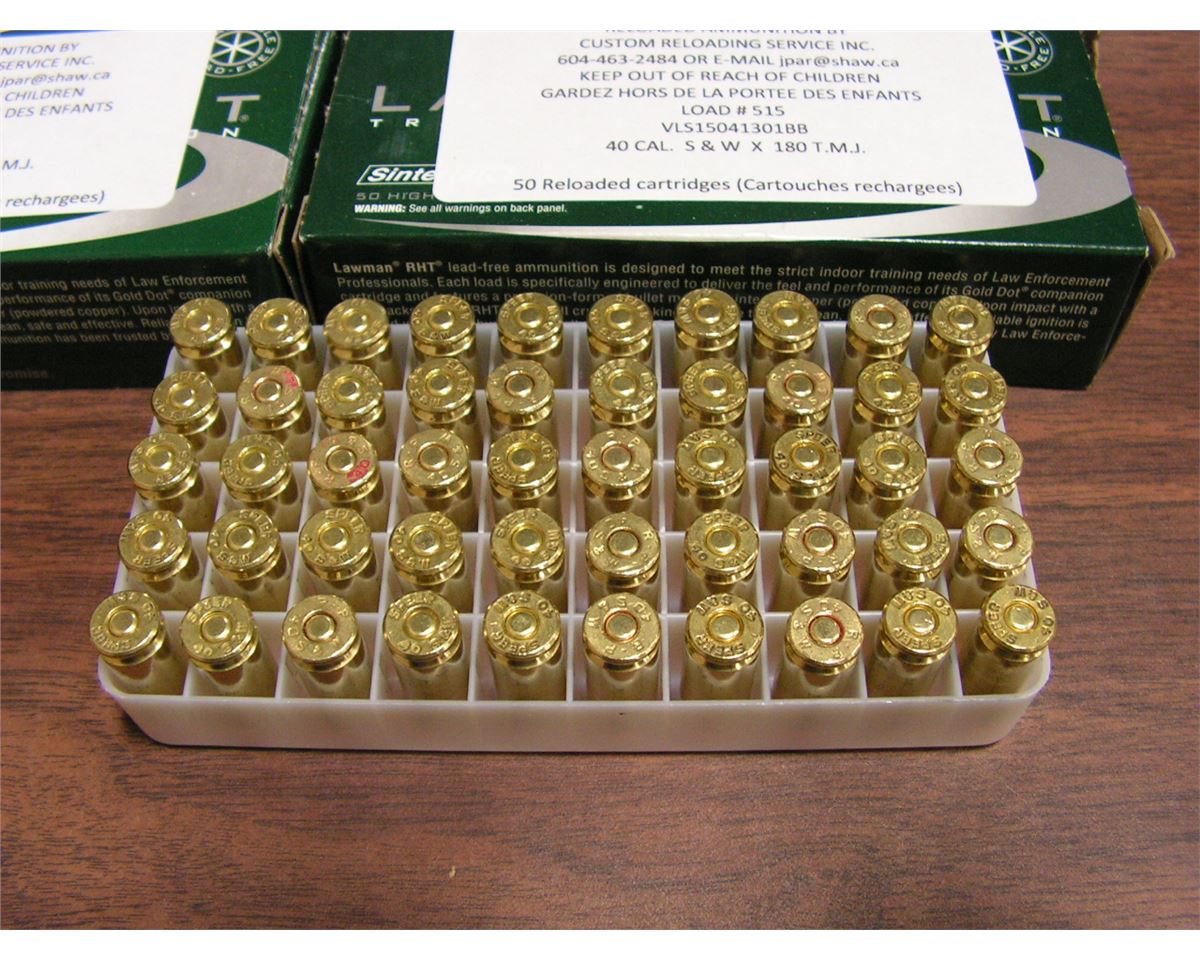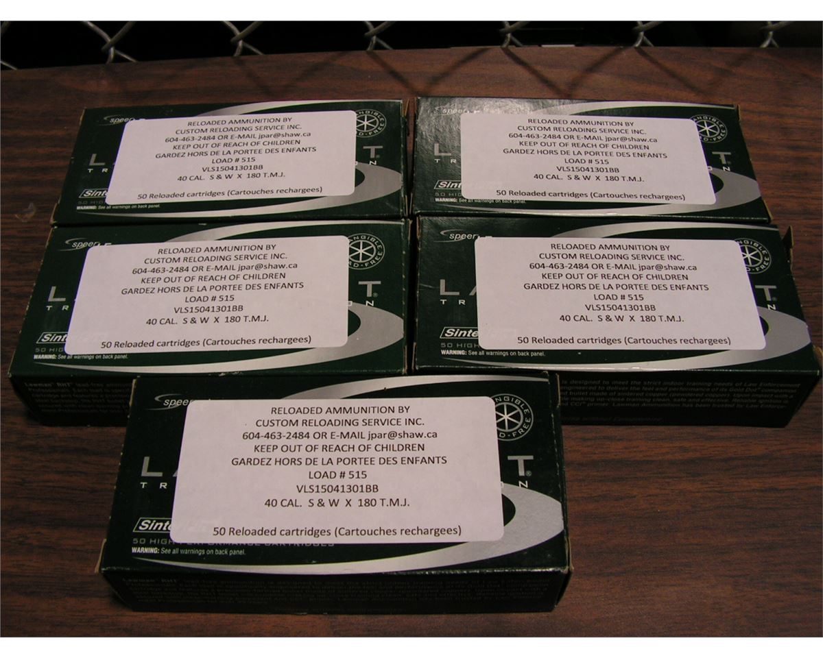 Lot 59 .40 CAL S&W (250 rds.) Custom Reloaded