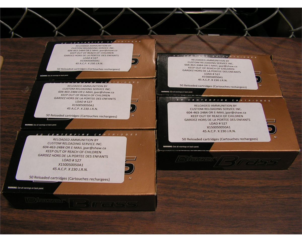Lot 61 45 ACP Ammunition (250 rds.) Custom Reloaded