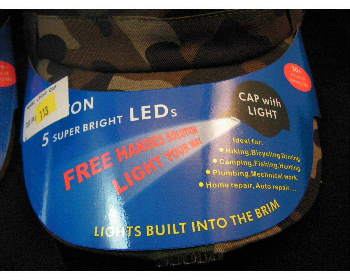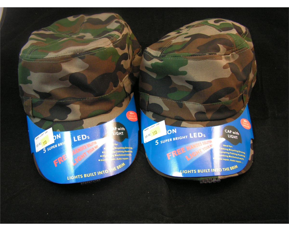 Lot of 2 brand new woodland camo caps each with 5 LED lights