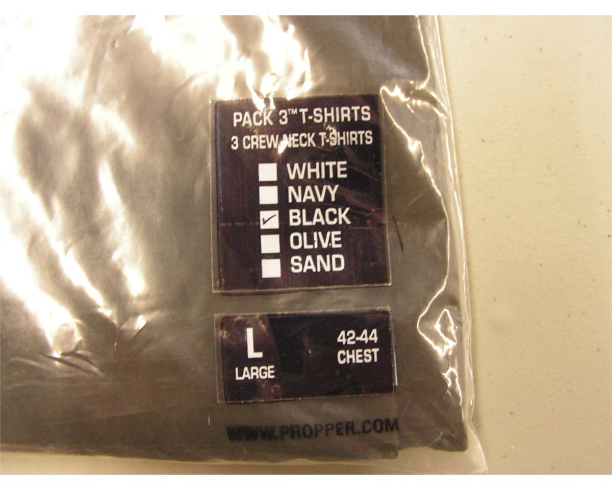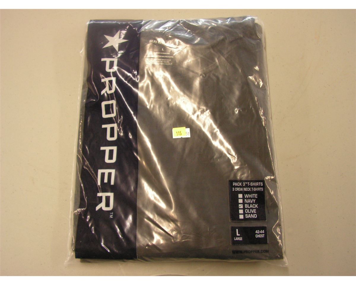 Lot 115 Propper T-Shirt 3 Pack (Black, Crew) LARGE - New