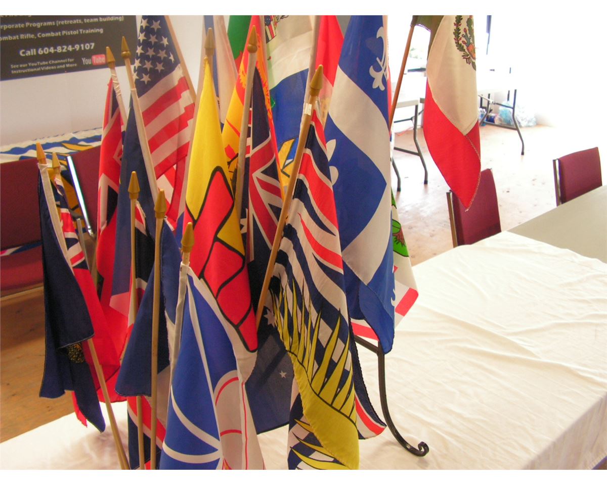Mainly a mix of Canadian provincial flags, with USA, Great Britain and Mexico as well.