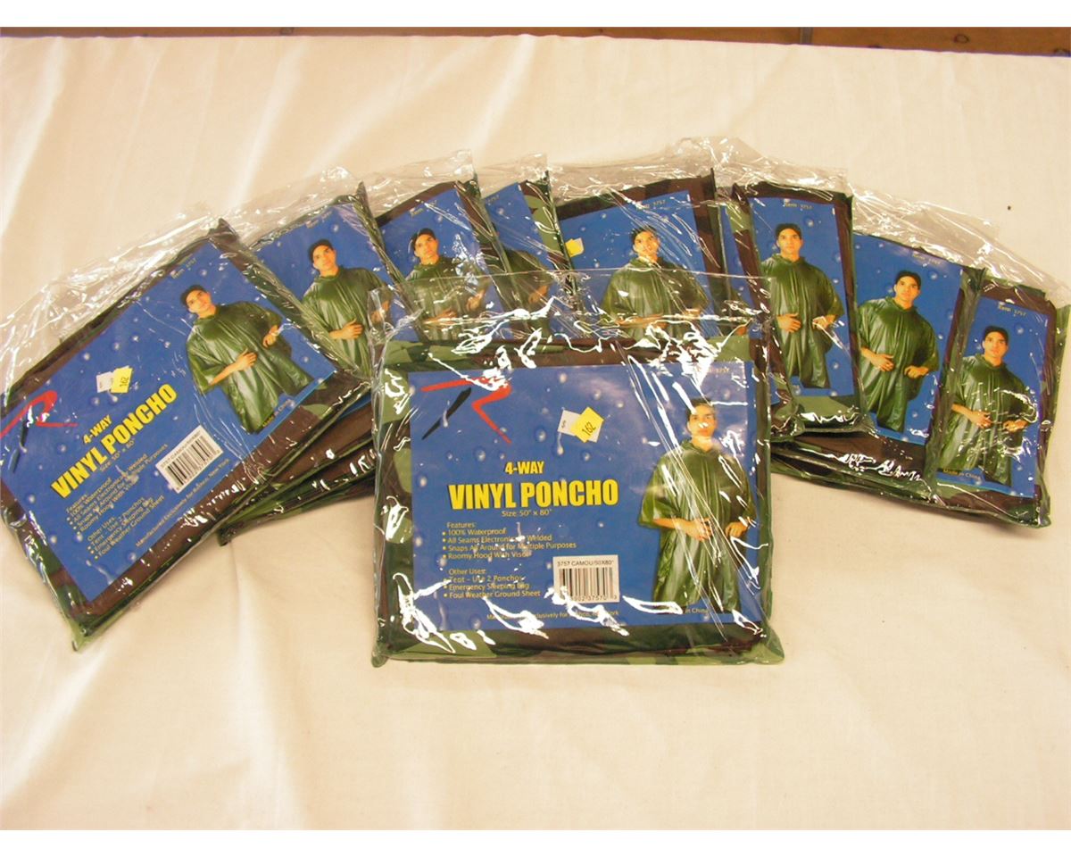 Lot of 10 wood land camo 4 way vinyl ponchos