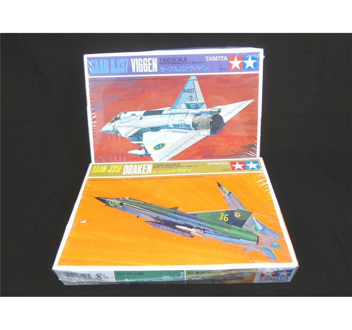Lot of 2 sealed 1:100 scale Tamiya brand SAAB fighter jet model kits