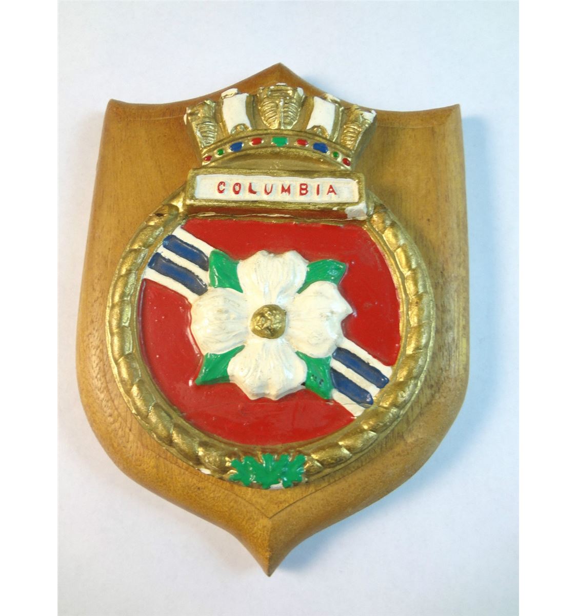 Lot 203 Canadian Navy Ship Plaque - HMCS COLUMBIA (Wood / Painted) 7" x 5.4"