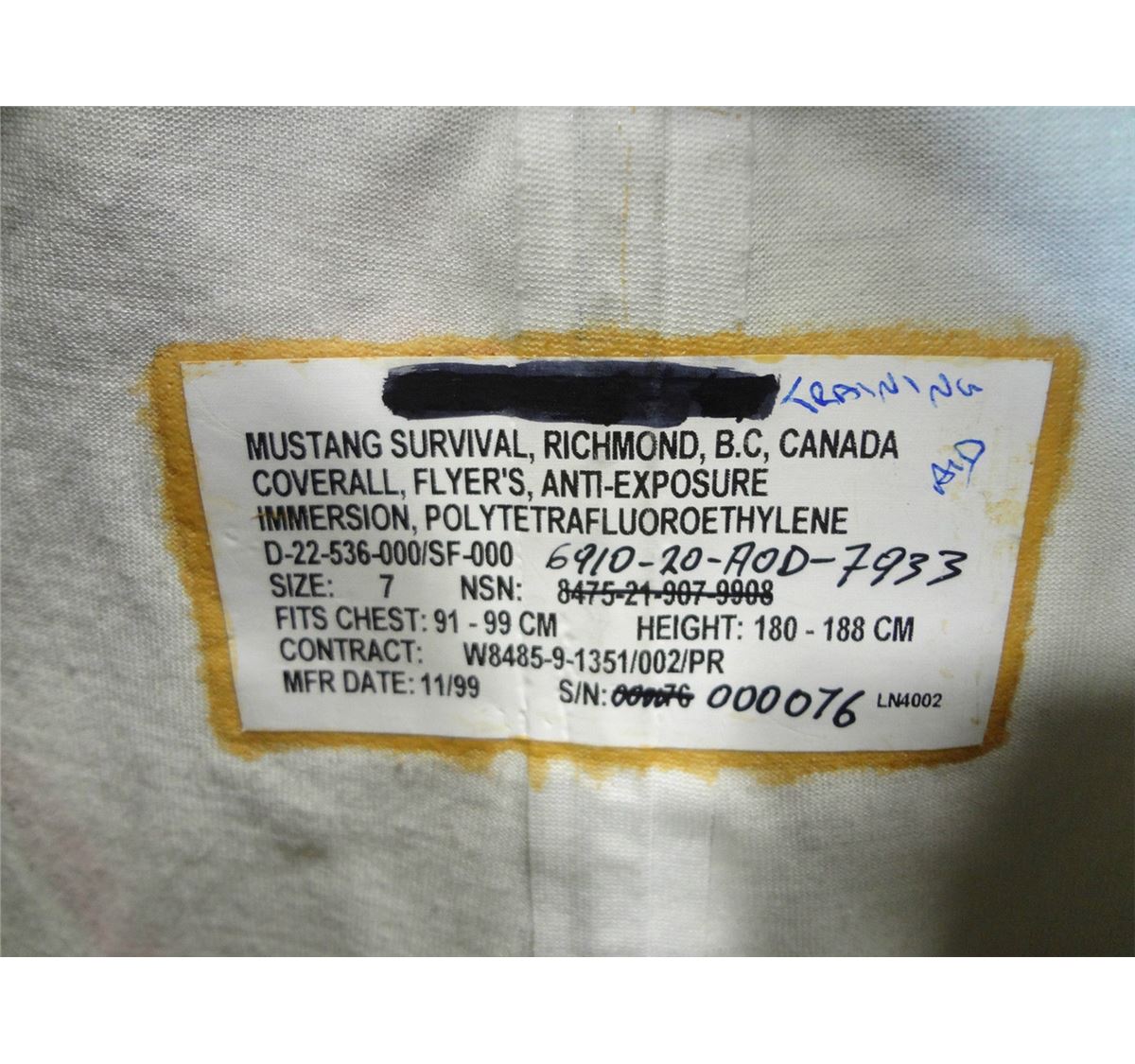 Lot 304 Canadian Navy MUSTANG SURVIVAL *Flyer's Anti-Exposure Coveralls* TRAINER