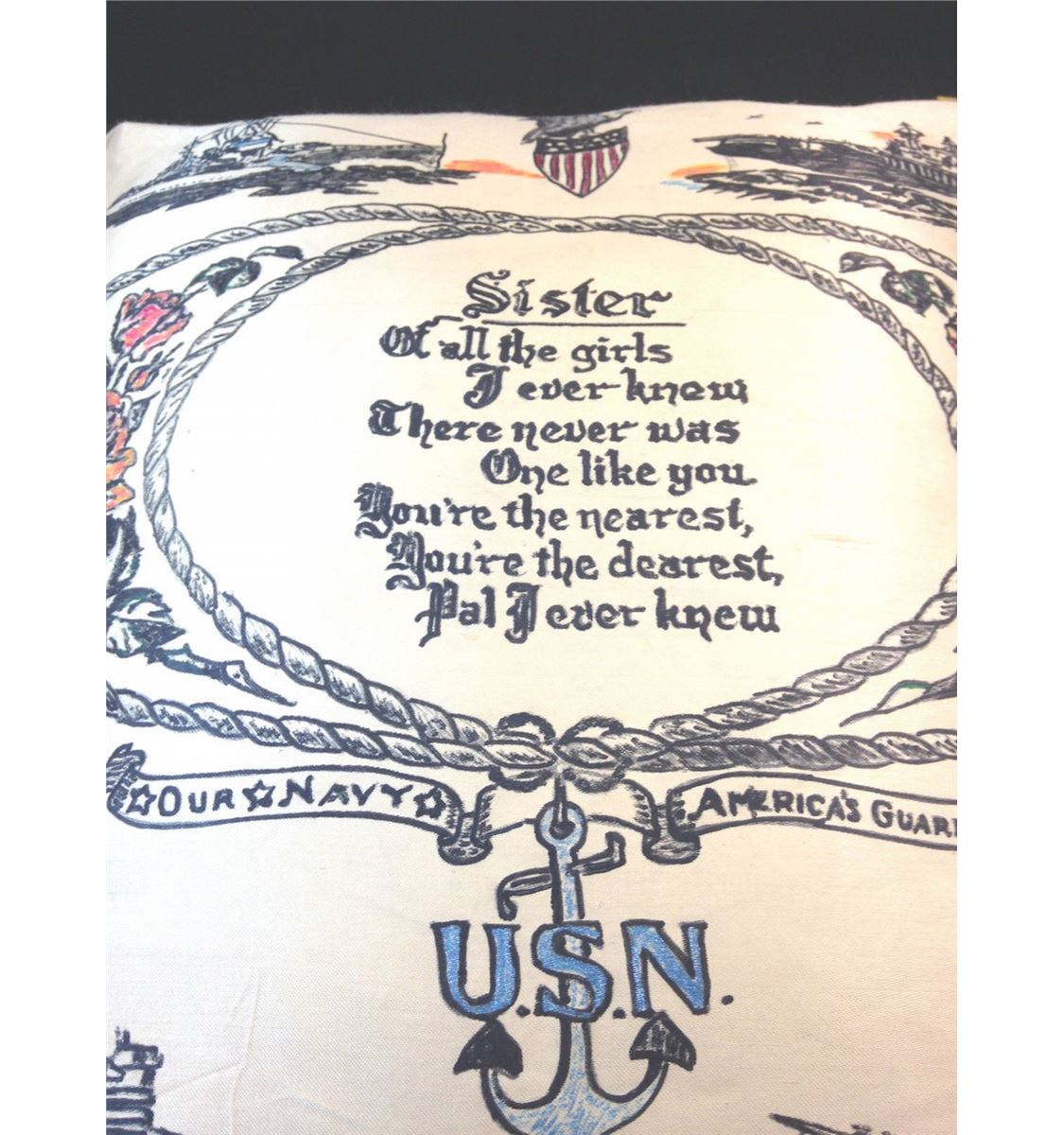 World War 2 era United States Navy sweetheart pillow cover