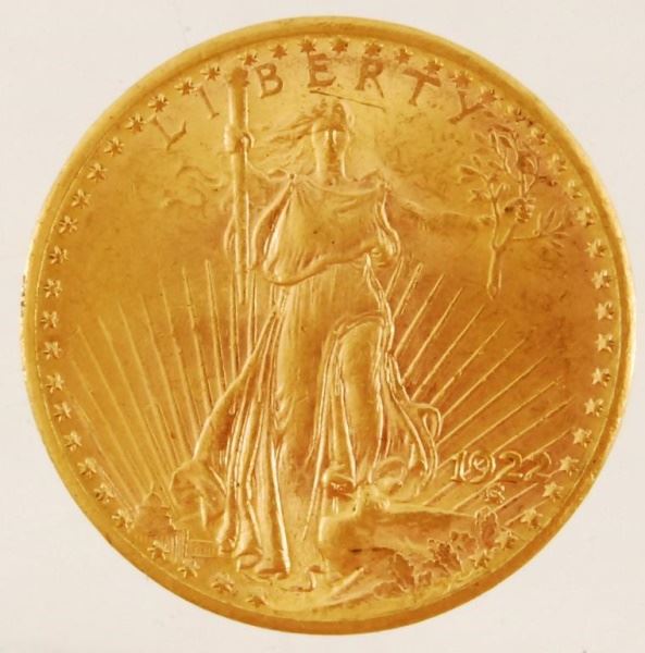 Lot 136 U.S. $20 Gold Coin 1922-X
