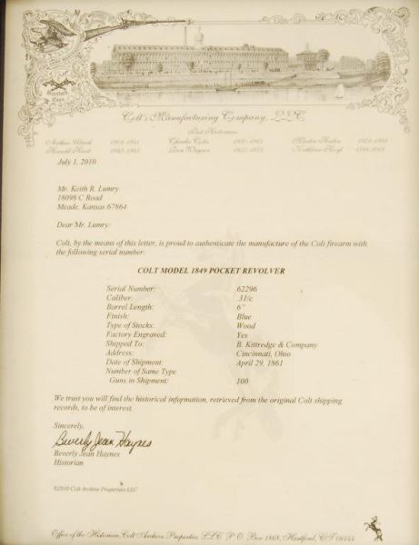 Factory engraved with rare factory letter. 6" barrel. Made in 1861.
