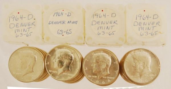 Lot 225 4 Rolls Uncirculated 1964 Kennedy Half Dollars