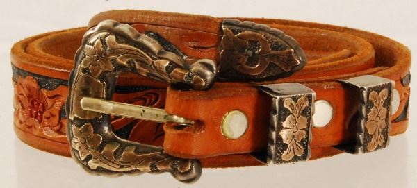 Lot 385 Silver & Gold Ranger Buckle Set & Tooled Belt