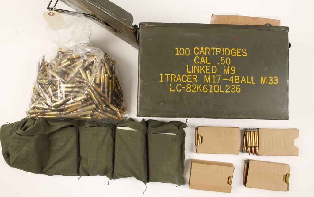 520 rounds of assorted 5.56 NATO ammunition including: 100 rounds in stripper clips in a bandoleer, 120 rounds in surplus ammo boxes and 300 rounds of Federal 62 grain M855 ammo with green tips. All inside a green metal ammo canister.